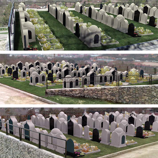 Artist's impression of terraced installations complete with memorials and planter frames.
