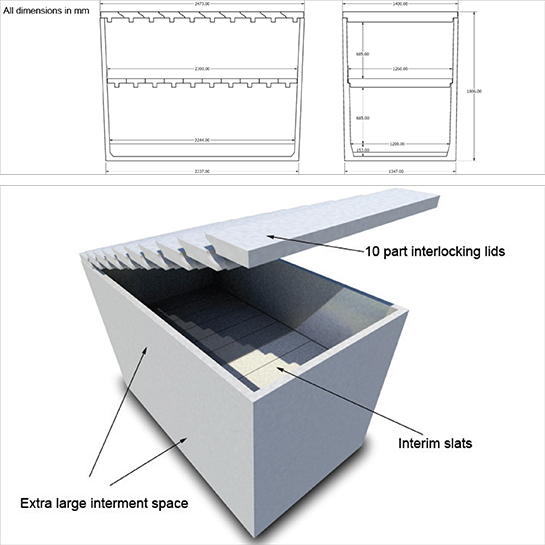 The Super Grande Burial Chamber provides two extra large interment spaces and is suitable for very over-sized caskets or for families who simply prefer a larger chamber for their loved ones.