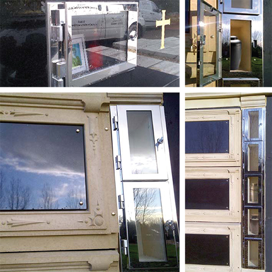 The niches are enclosed in an attractive polished stainless steel frame and each door is furnished with toughened glass and secured with tamperproof fixings and locks.