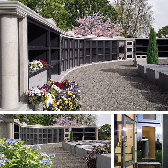 The mausoleum has fine detailing in cast decorative stone and offers the added provision of Keepsake Niches which can be used for the interment of cremated remains or for keeping personal items relevant to the deceased.