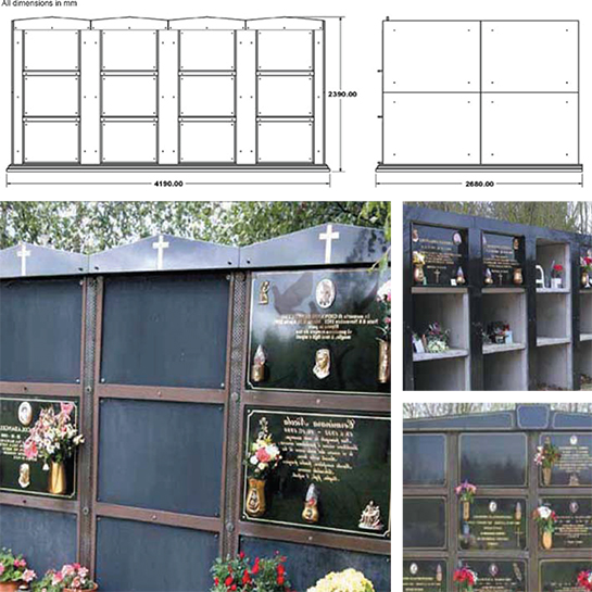 The Bora can be installed with either smooth frontages or shelving for tributes.