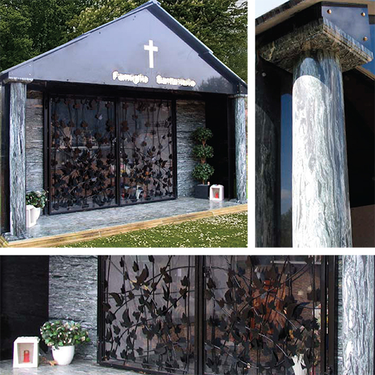 Secure and private family interment granite structure providing a dignified and comforting solution for interment and on-going remembrance.