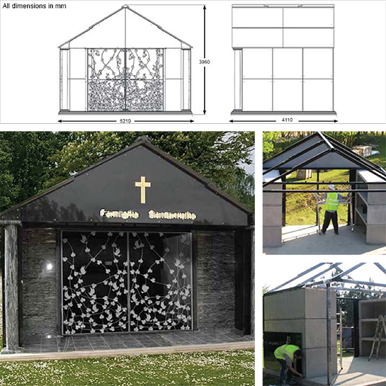 An original design by welters providing 6 side charging interment spaces within a secure granite structure.