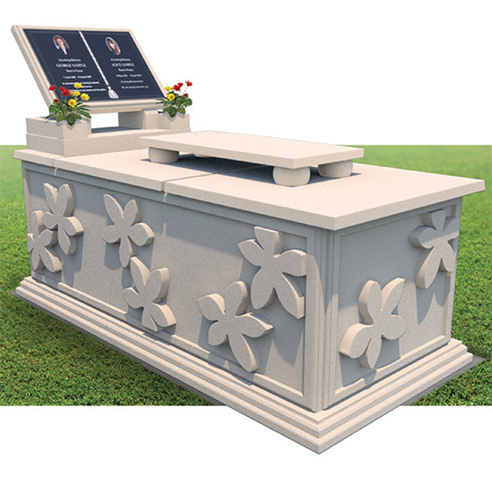 - Decorative stone book memorial with flower holders