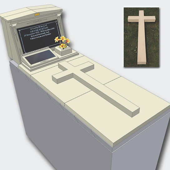 The cross can be fitted as part of a welters decorative stone memorial system as shown in the image opposite.