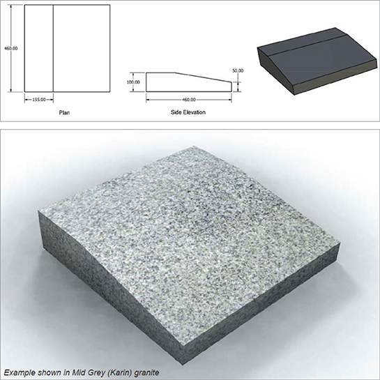 The polished granite kerb block is available in a range of colours and can be supplied complete with inscribed grave number on rear face and 120 inscribed characters to sloped face.