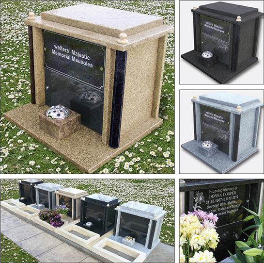 The Majestic Memorial Mausolea provides space for four cremated remains interments. The Memorials can be installed in a variety of configurations and material options.