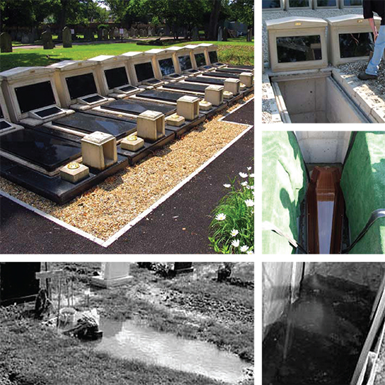 Solve this problem now by installing one piece cast double interment LACO and Environment Agency compliant burial chambers and reduce or even eliminate the requirement of any drainage at all.