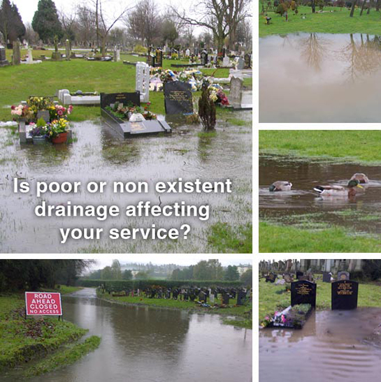 Many Burial Authorities will have notorious areas of cemetery land that flood on a regular basis albeit to a much greater degree in recent years due to our changing weather patterns.
